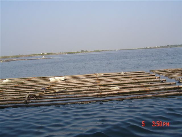 掠出來;繼續向前行,看到一區一區的蚵仔棚,解說員講飼佇潟湖的蚵仔,愛